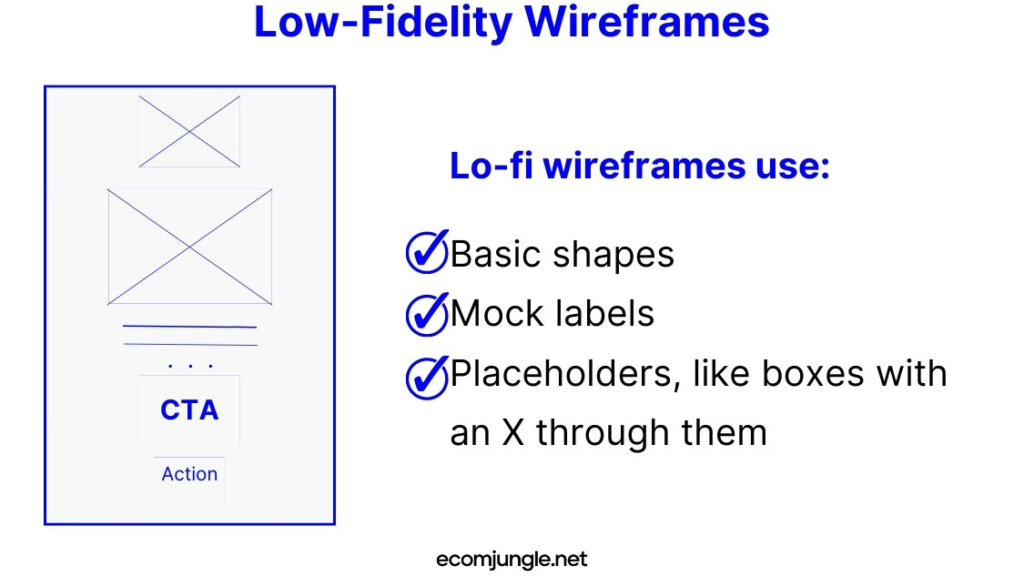 - Low-fidelity wireframes are perfect for the initial wireframe of your project. They are quick, great for brainstorming, and allow for swift changes and broad discussions about UI.