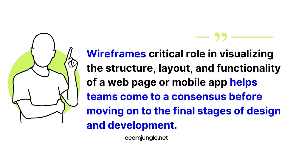 A wireframe is like the architectural plan for a webpage’s interface. It’s a two-dimensional sketch that maps out where everything will go on the page and the importance of each element. It outlines the bare-bones of functionalities and intended behaviors, keeping the focus clear by leaving out decorative aspects like styling, color, or graphics. By placing emphasis on space allocation and content prioritization, wireframes serve as a crucial guidepost in the journey of creating effective user interfaces.