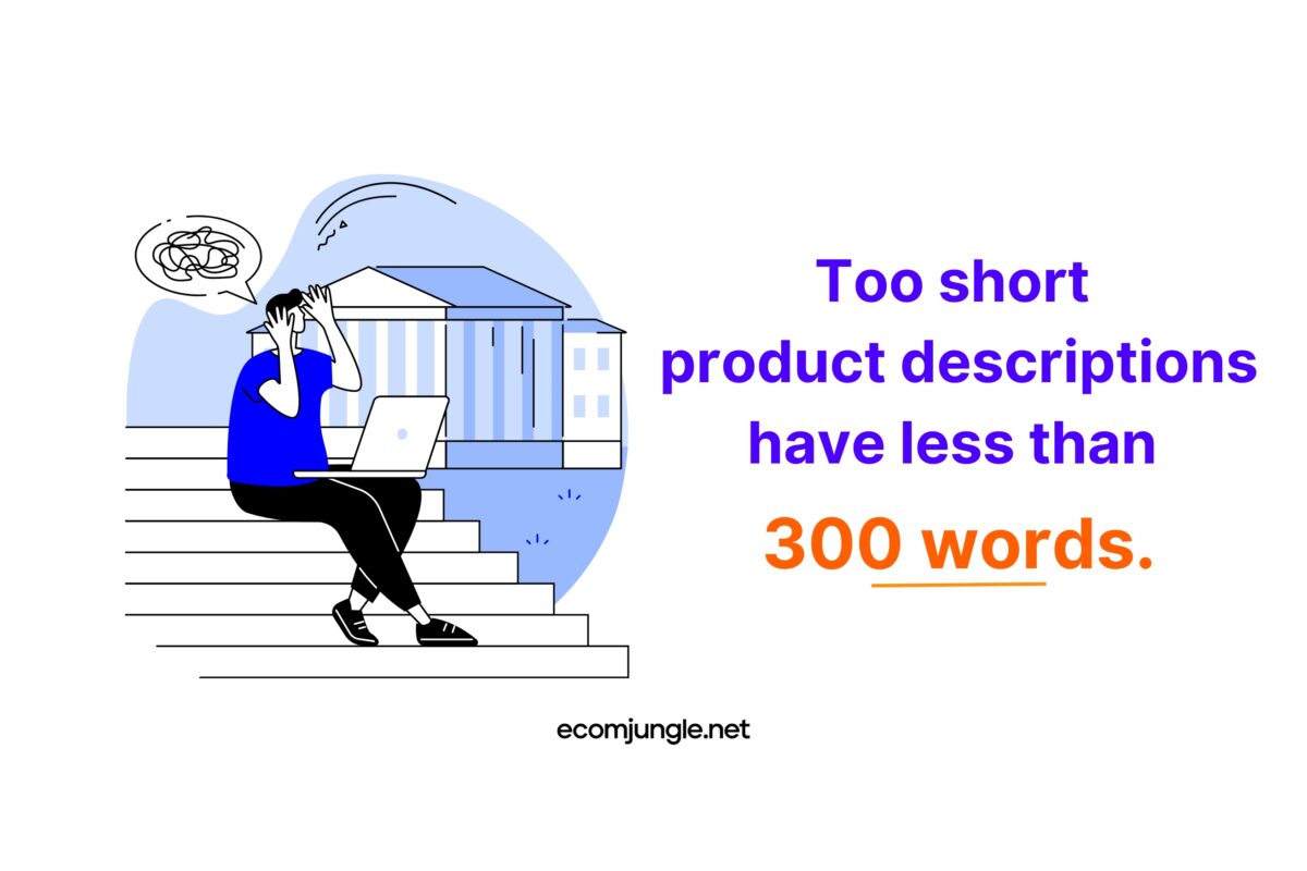 Too short product descriptions have less than 300 words, characterized by exposing the essential details and the primary sales arguments in very few words.