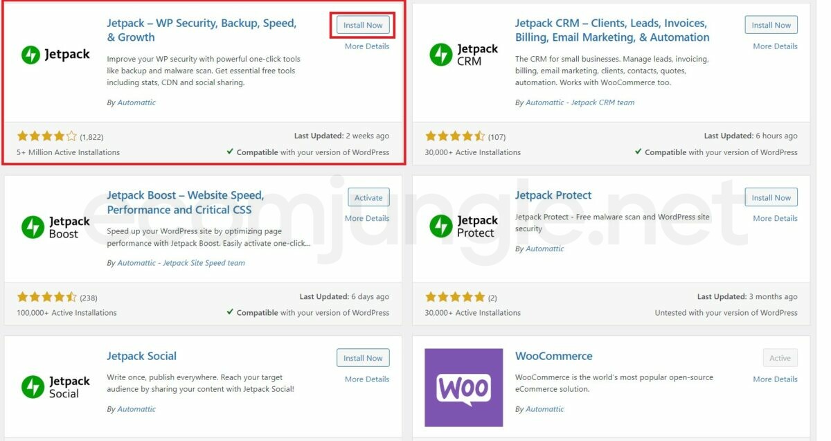 - Use the search bar to look for the plugin you want to install. For this example, we’ll be using Jetpack.