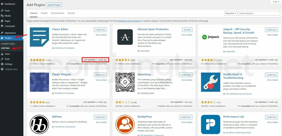 To check when a plugin was last updated, navigate to the Plugins section on your WordPress admin page. Then click Add New to open the WordPress Plugin directory.