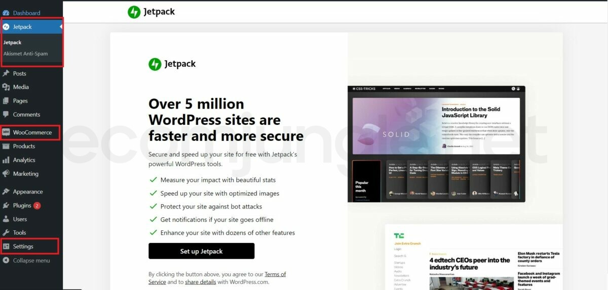 - To further set up a plugin, look for it within the Settings section, or it might get added directly to the admin bar.