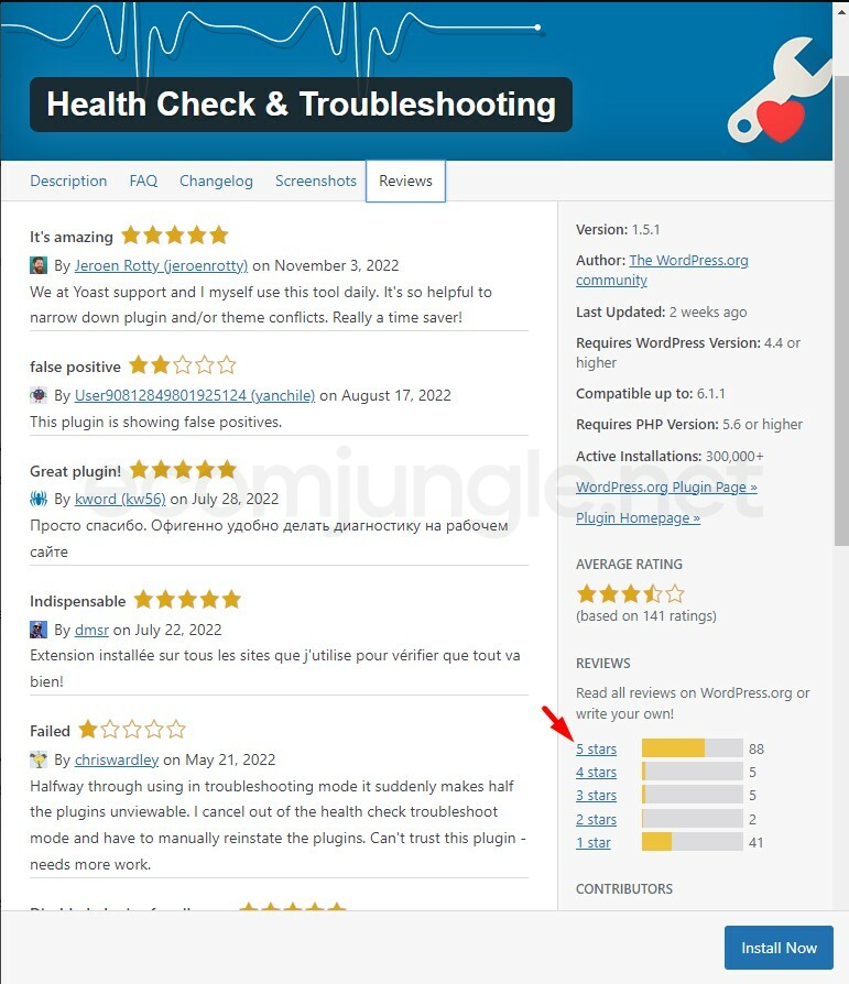 The WordPress plugin rating system is more effective than ever, thanks to some recent updates by WordPress’s developers. If you want to read plugin reviews or check any one or 2-star reviews, click the More Details link.