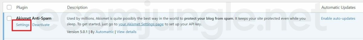 - Settings – once a plugin is activated, you can select this option to view the plugin Settings page to set up the plugin.