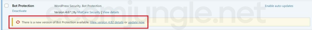 - When it’s time to update a plugin, find it in the list and look for the yellow notification that says, ‘There is a new version of XX available’.