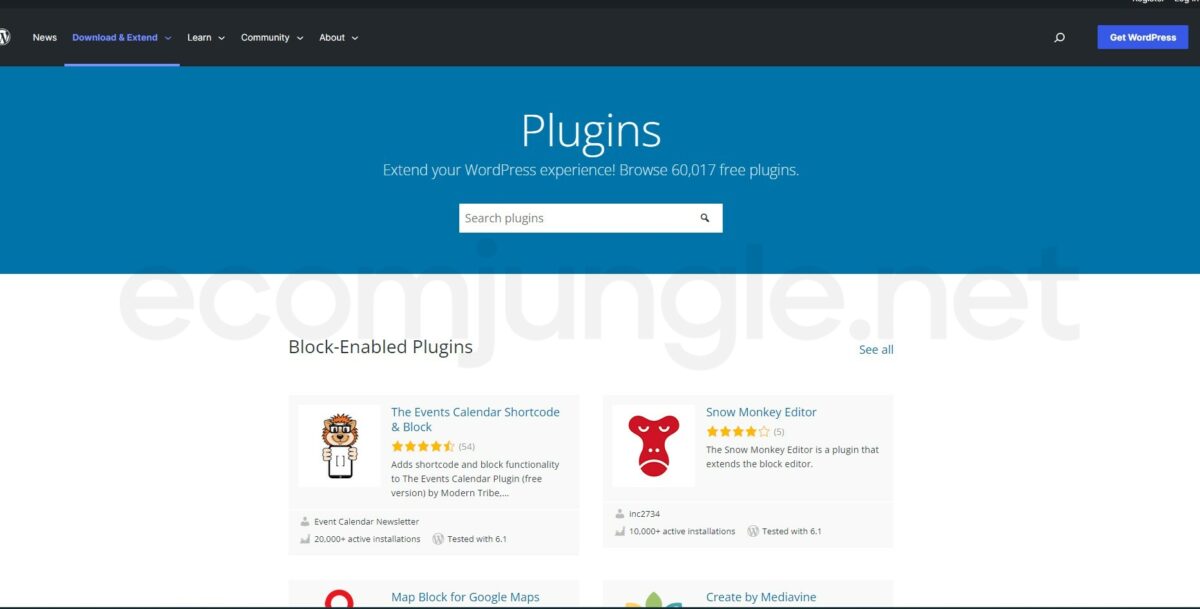WordPress.org hosts the official WordPress plugin directory with over 58,000 plugins. This directory is the best place to find plugins, and it’s super easy to install and activate plugins from the directory directly from your WordPress admin area.