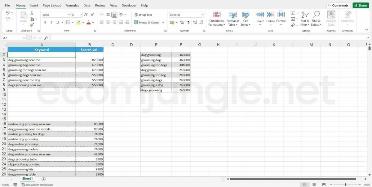 - Open a new Microsoft Excel document or google spreadsheet; this you will use as your space for all your keyword groups.