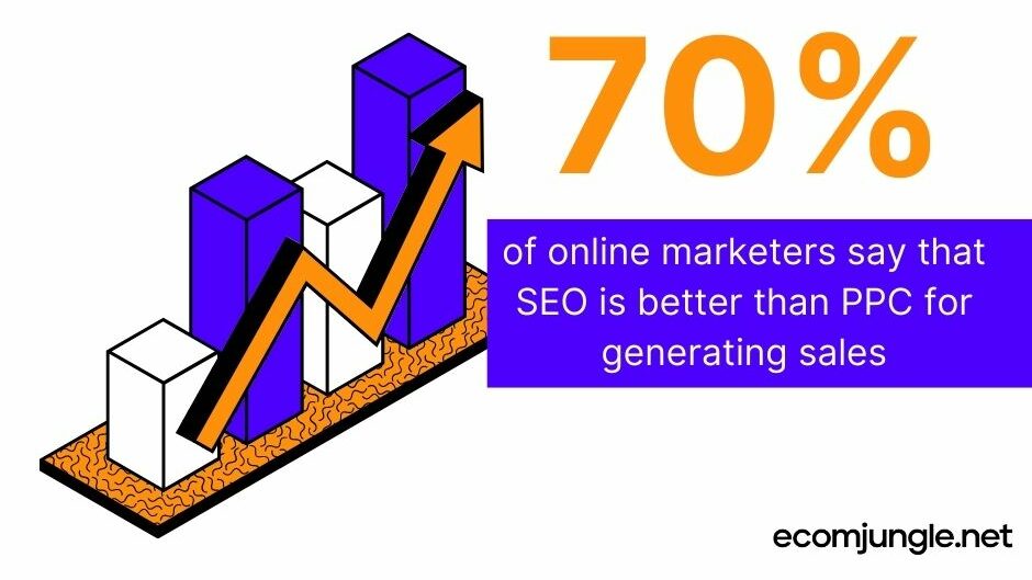 According to Databox, 70% of online marketers say that SEO is better than PPC for generating sales.