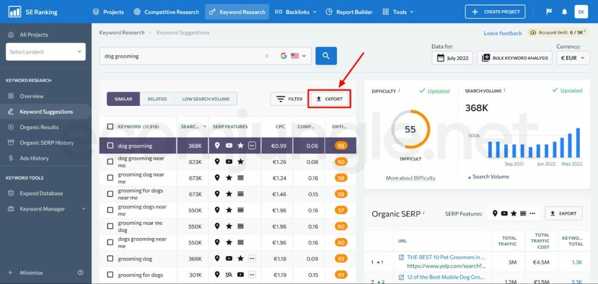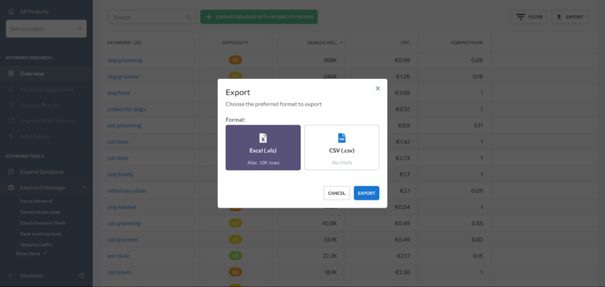 If you notice that some of the keywords have a search volume of 0, remember that that is an approximate number between 10 and 0, so you should consider it as a 5 and still think of these keywords because they could still bring at least 2 to 3 potential customers a month to your website. If this number is a 0, SE Ranking would not suggest these keywords to you.