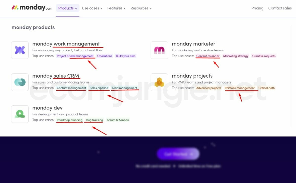 A helpful way to find potential seed keywords is to make lists of products, services, and even brands that relate to your keywords. For example, if you offer software like Monday, some products would be CRM, Project management, and order management.