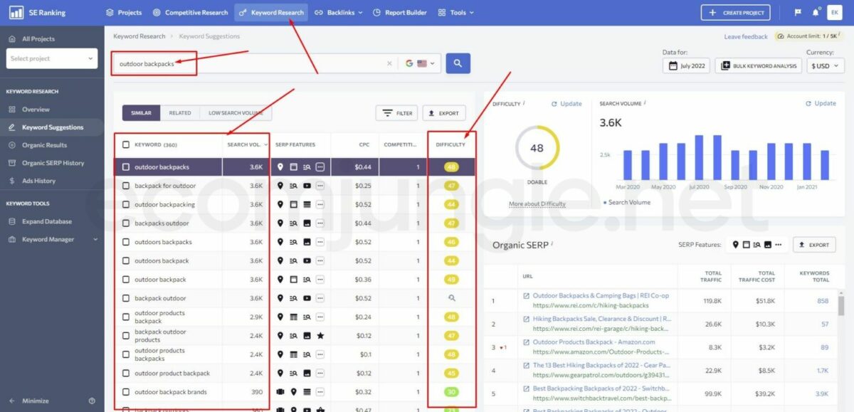 - Select Long-Tail Keywords Over Short-Tail: these are terms generally with low traffic potential but low keyword difficulty and therefore easier to position, especially for online business. Find out how to do your eCommerce keyword research.