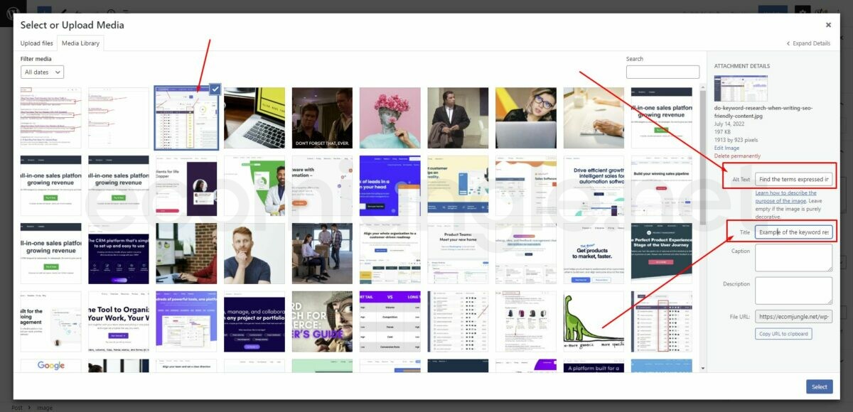 Something that many creators miss includes a target keyword in the names and ALT tags of your images.