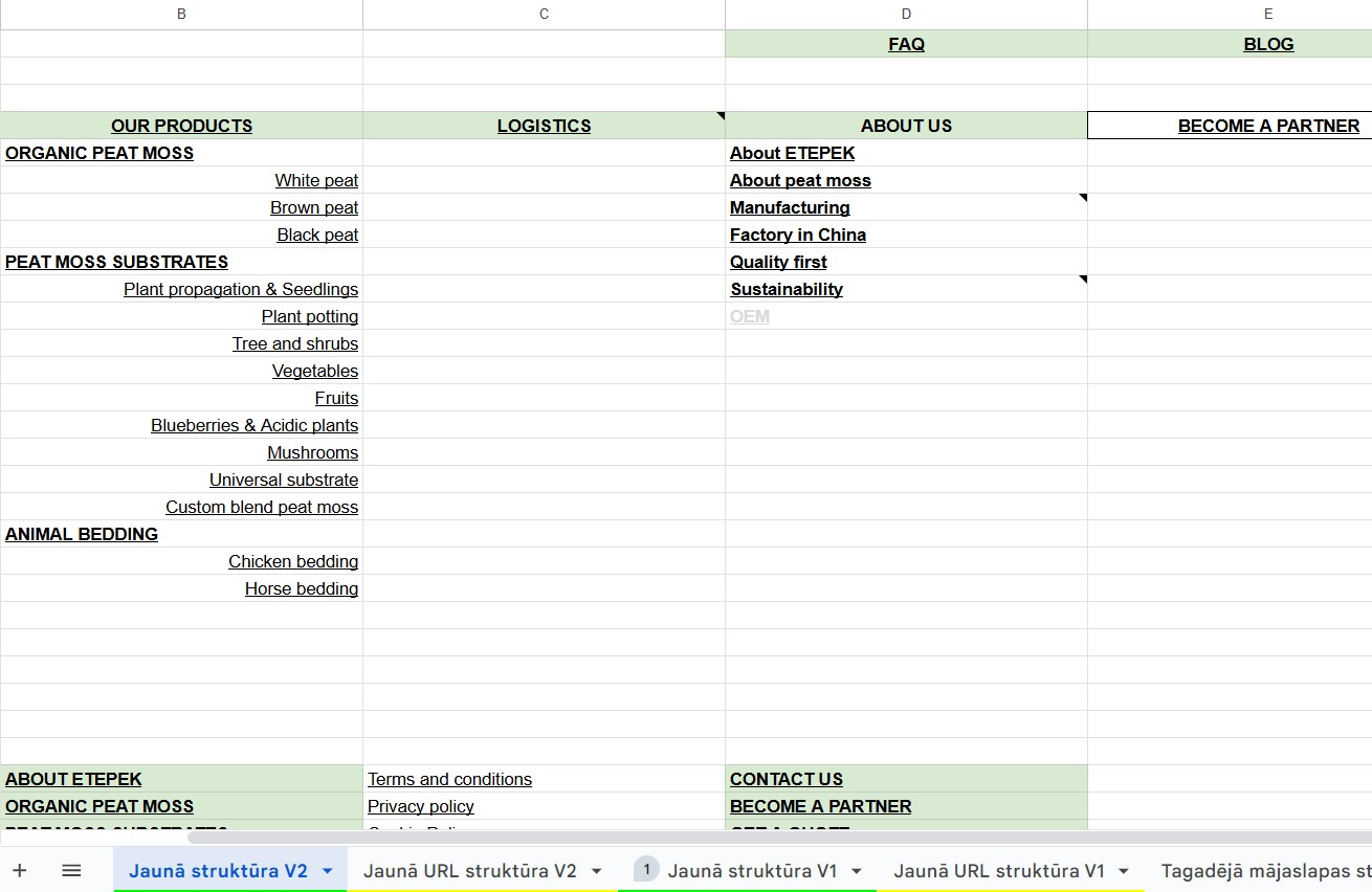Etepek.com - mājaslapas struktūras plānošana
