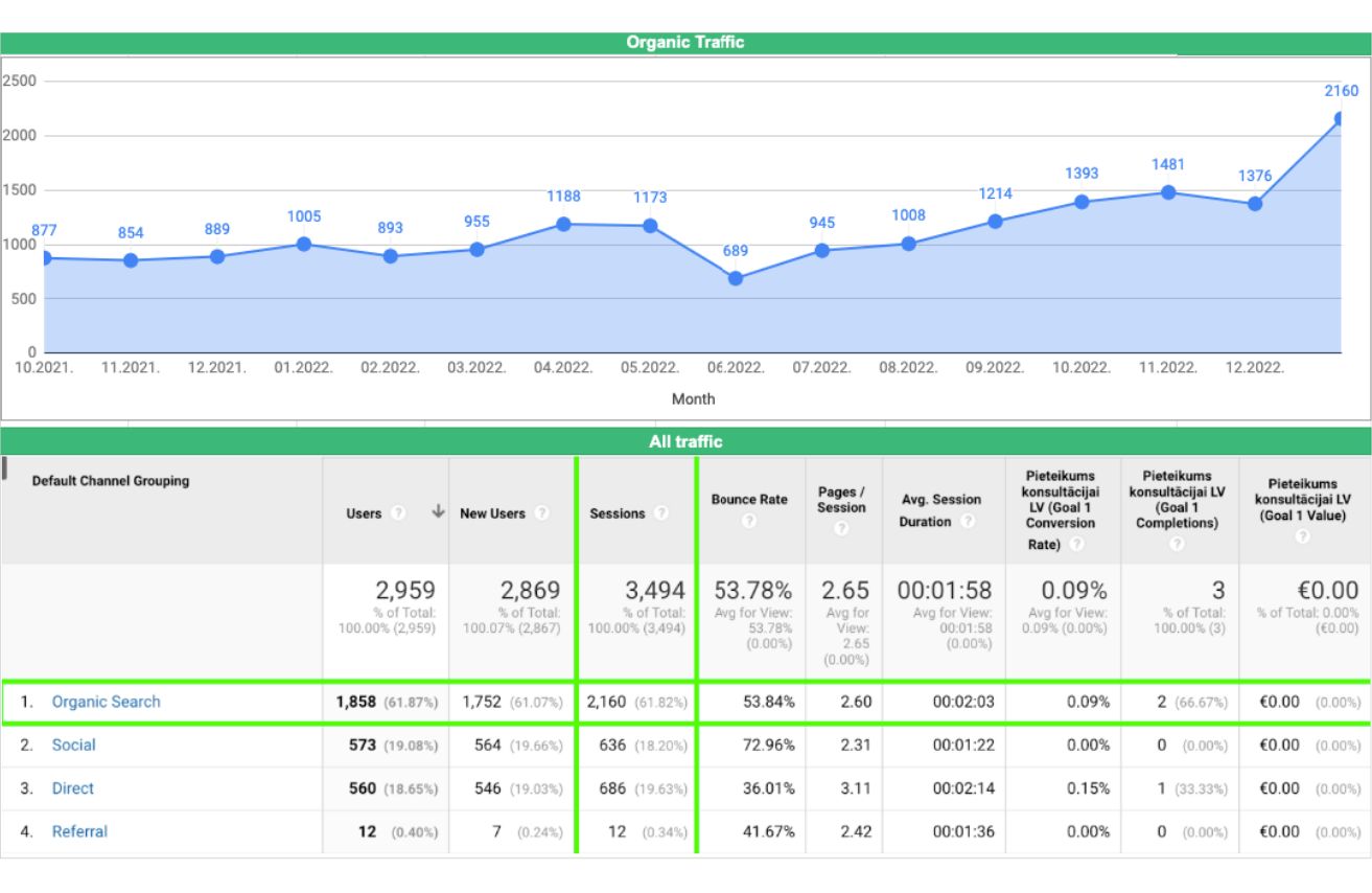 The largest eye care company in the Baltics saw a 435% increase in website traffic in just 5 months! We performed a technical audit of the website, followed by improvements in both technical and content aspects.