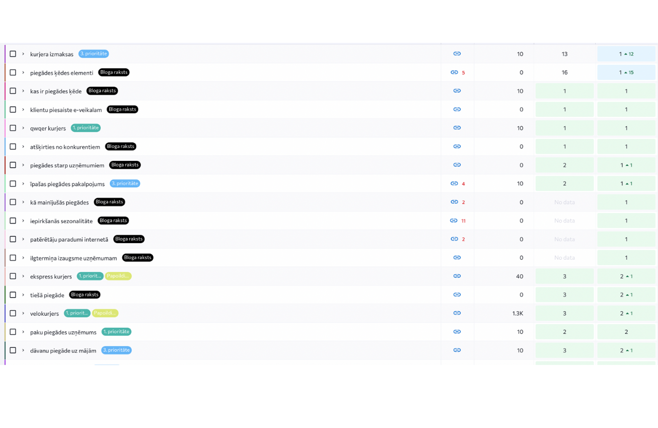 The results of the keyword research revealed a major challenge: there was a limited amount of relevant keywords in the sector. This complicates the SEO optimisation process and reduces the opportunity to increase the number of potential customers – visitors to the website – by using as many different keywords as possible.