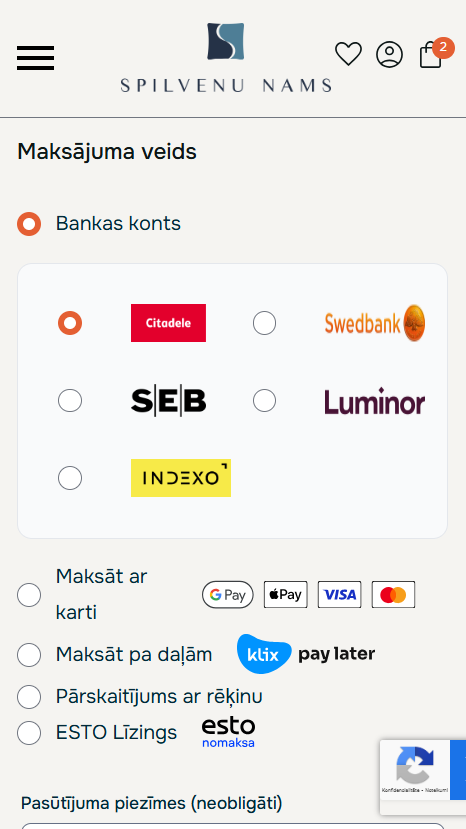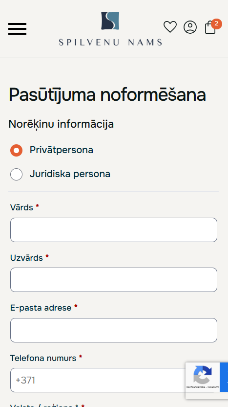 Spilvenunams.lv - Pasūtījuma noformēšana - mobile