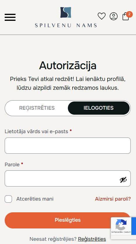 Spilvenunams.lv - Autorizācija lietotāja profilā - mobile