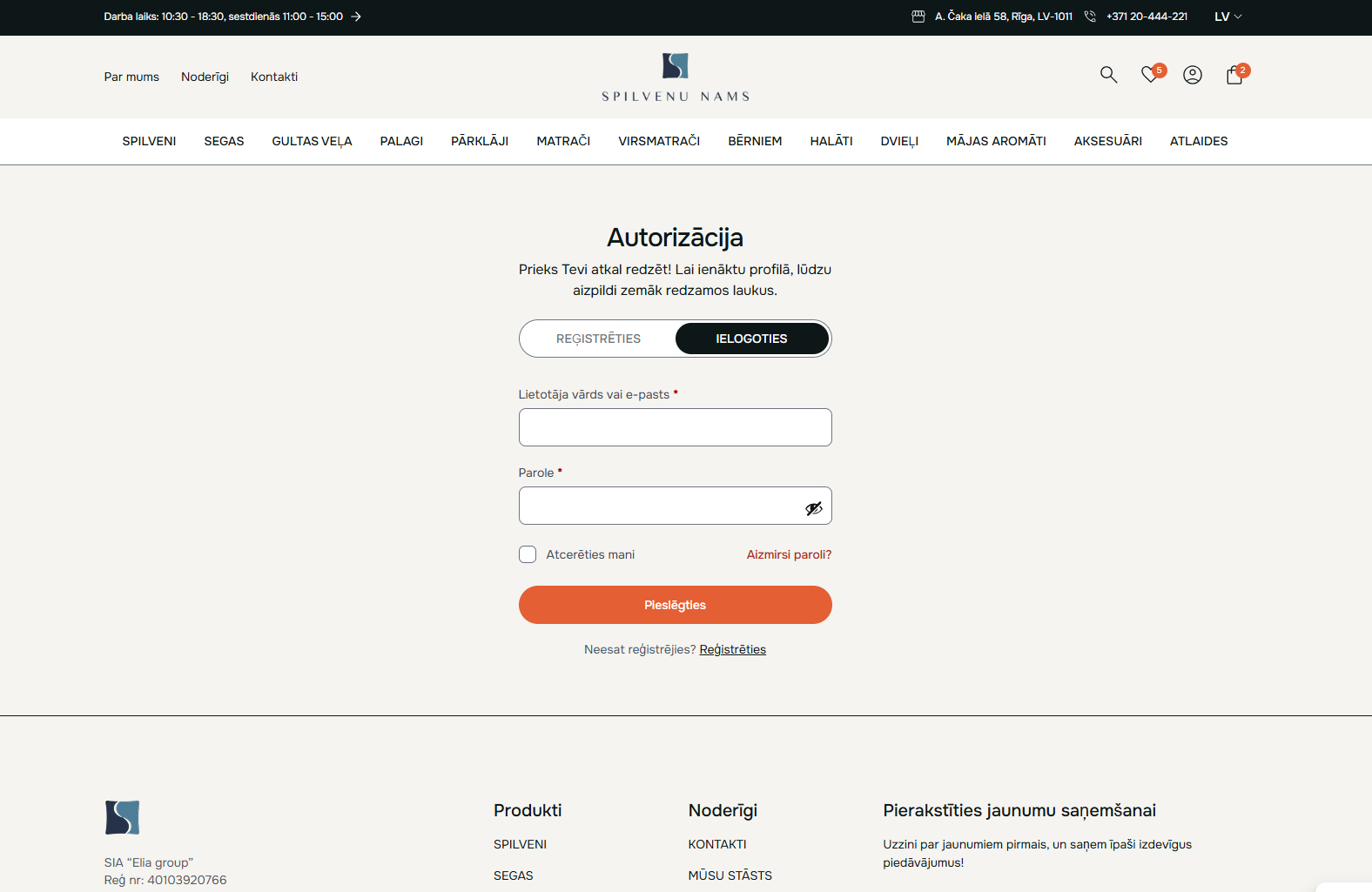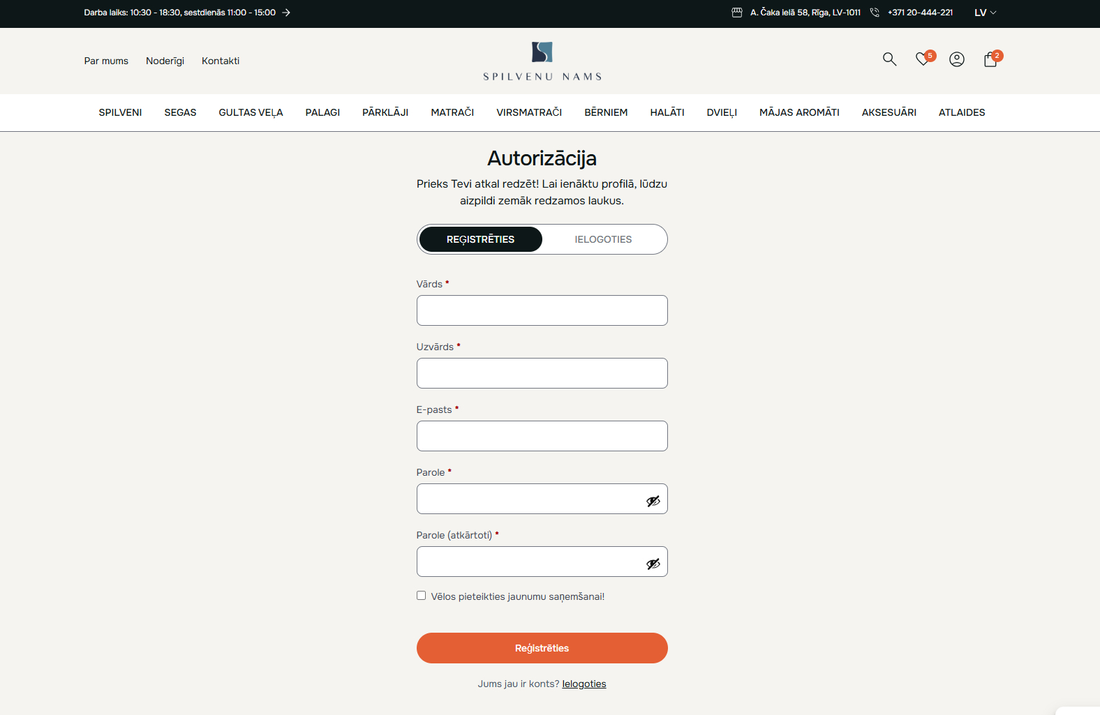 Spilvenunams.lv - autorizēšanās lietotāja kontā