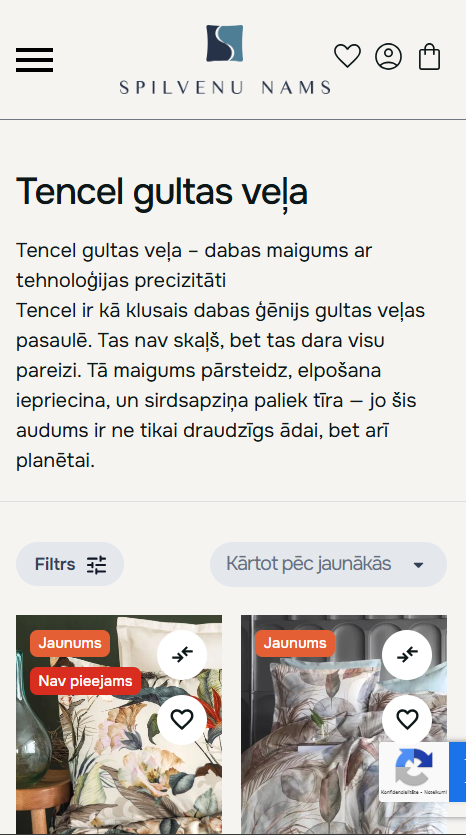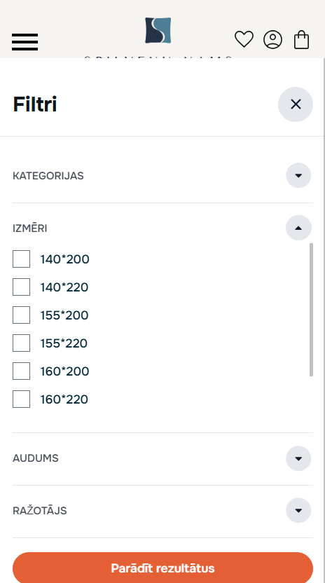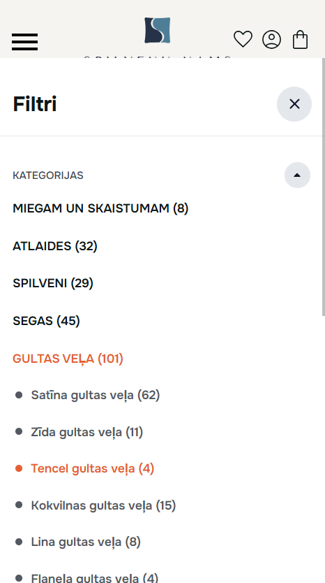 Spilvenunams.lv - Preču izmēru filtrs - mobile