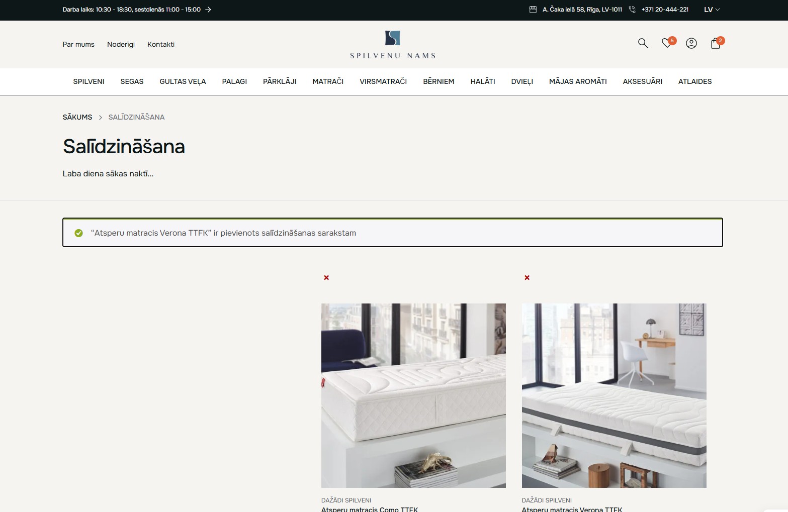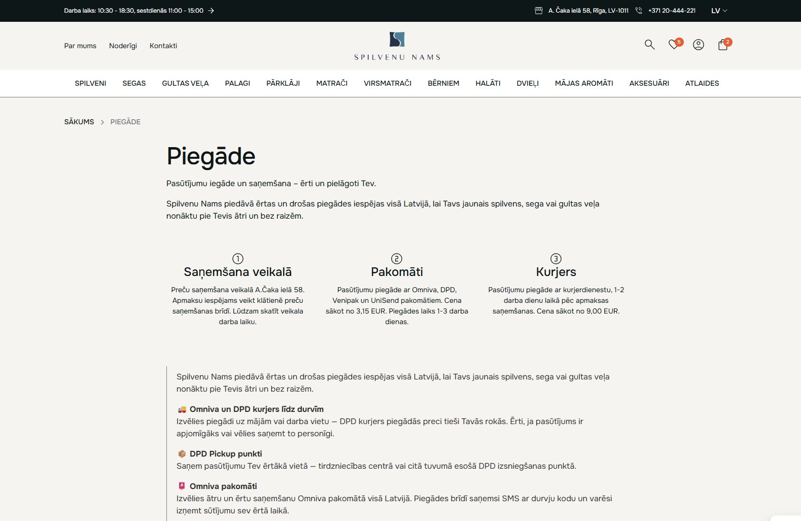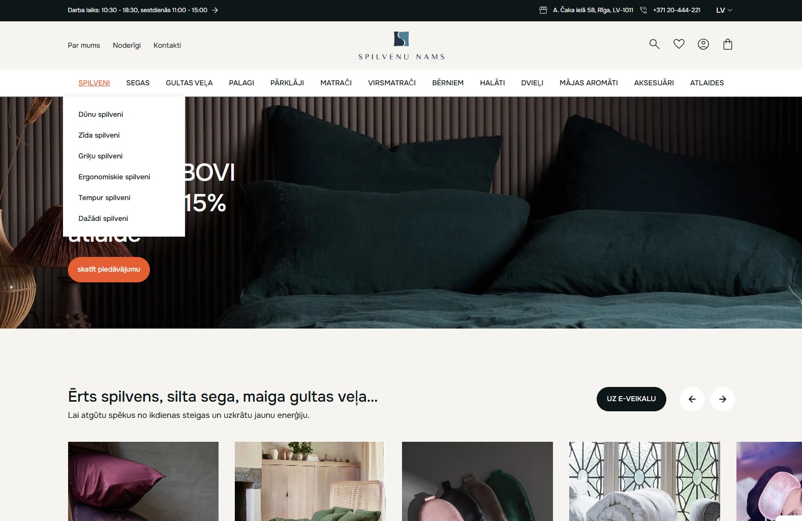 Spilvenunams.lv - e-veikals miega komforta un mājas tekstila preču tirdzniecībaiSpilvenunams.lv uzlabojumi - jauns dizains un efektīva preču datu apmaiņa