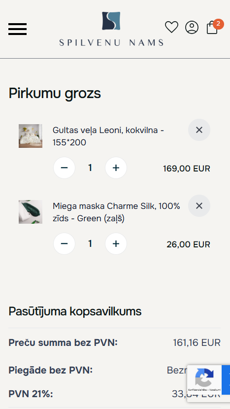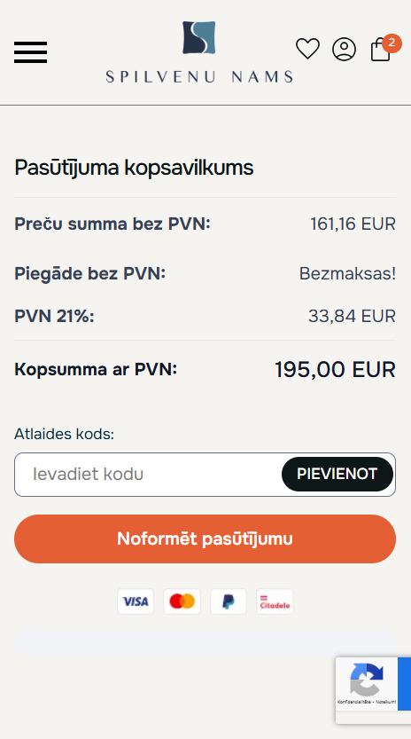 Spilvenunams.lv - Pasūtījuma kopsavilkums - mobile