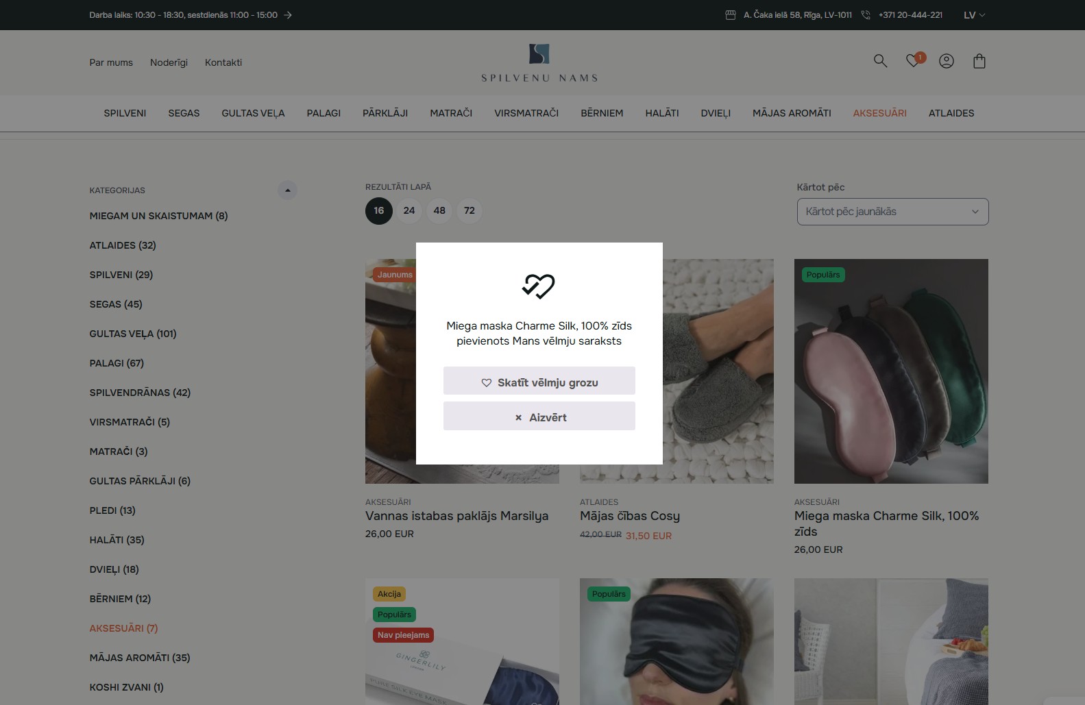 Spilvenunams.lv - preces pievienošana vēlmju sarakstam