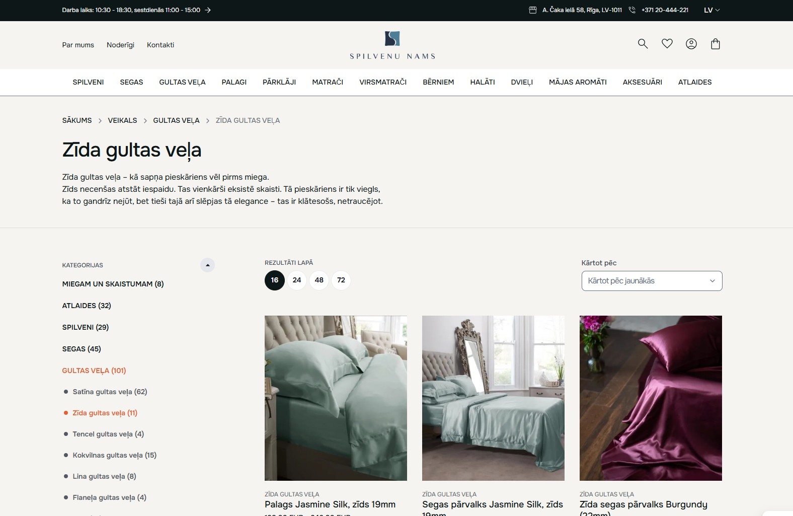 Spilvenunams.lv e-komercijas platforma uz WooCommerce bāzes
