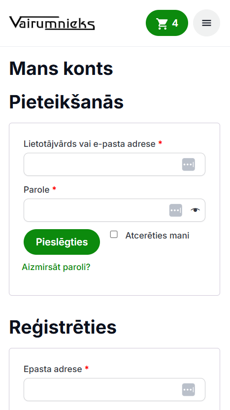 Vairumnieks.lv - Autorizācija lietotāja profilā - mobile