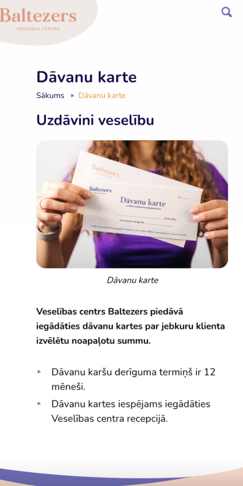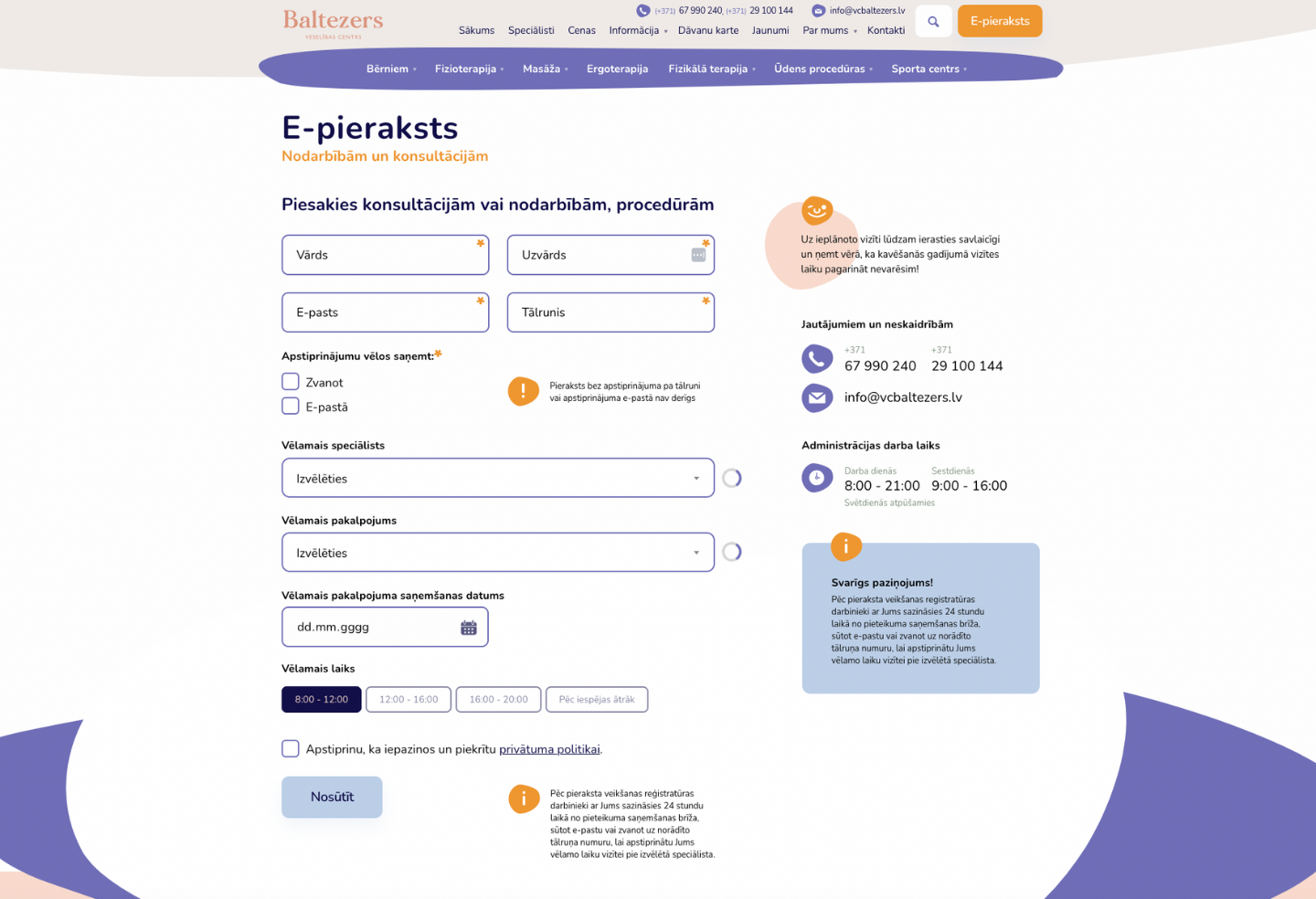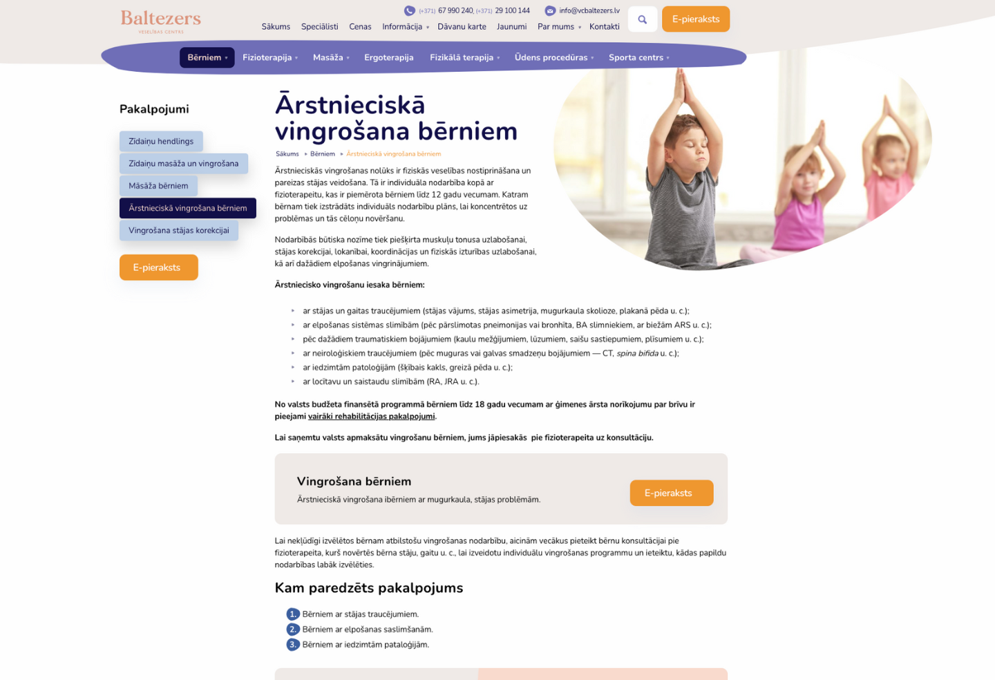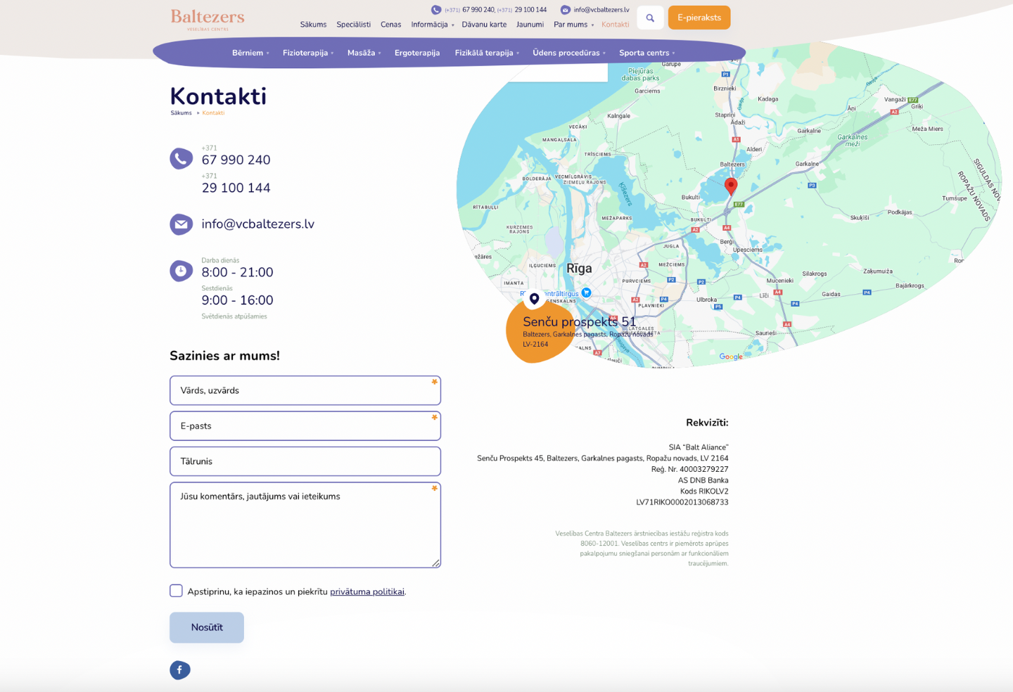 Through analytical research of the health and rehabilitation sector, we have created a successful website solution that includes all services provided by VC Baltezers with sections for detailed information, as well as 24/7 access to e-login for the company’s clients.